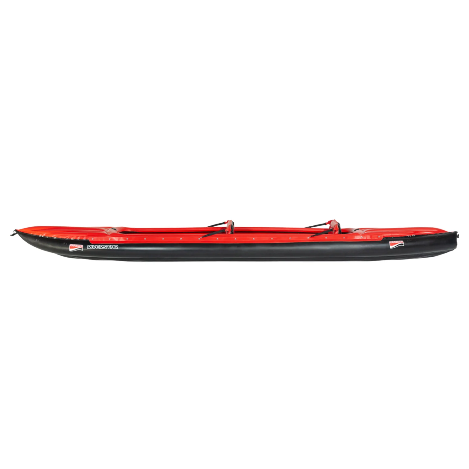 Der Grabner Riverstar zählt zu den beliebtesten Luftkajaks überhaupt – und das aus gutem Grund. Er bietet außergewöhnlich viel Raum für Paddler und Gepäck und überzeugt mit seinen besonders komfortablen Luftsitzen, die auch auf langen Touren für ein entspanntes Fahrgefühl sorgen. Dank der großzügigen Innenbreite finden selbst große und schwere Paddler bequem Platz und genießen ein souveränes, stabiles Kajakerlebnis.