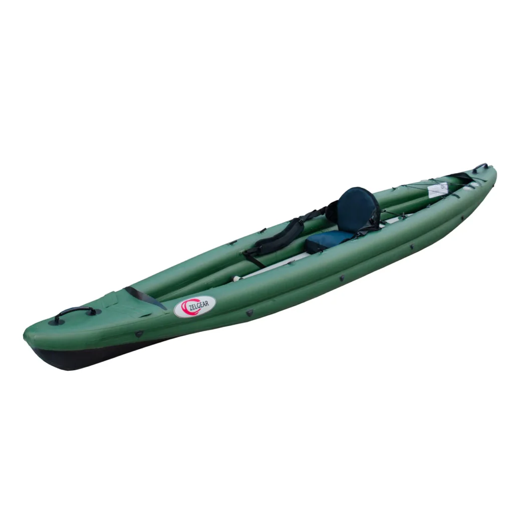 Das Zelgear Igla 410 (englisch: “Needle) ist ein schnelles Einer-Tourenkajak, das sich auf Tagestouren auch als Tandem fahren lässt. Das Igla 410 ist sehr kippstabil und der Sitz äußerst bequem. Sollte es zu Defekten kommen, lässt sich der herausnehmbare Dropstitch-Boden auch nach Jahren problemlos austauschen. Die Seitenschläuche werden mit einem Druck von 0,25 bar aufgepumpt.
